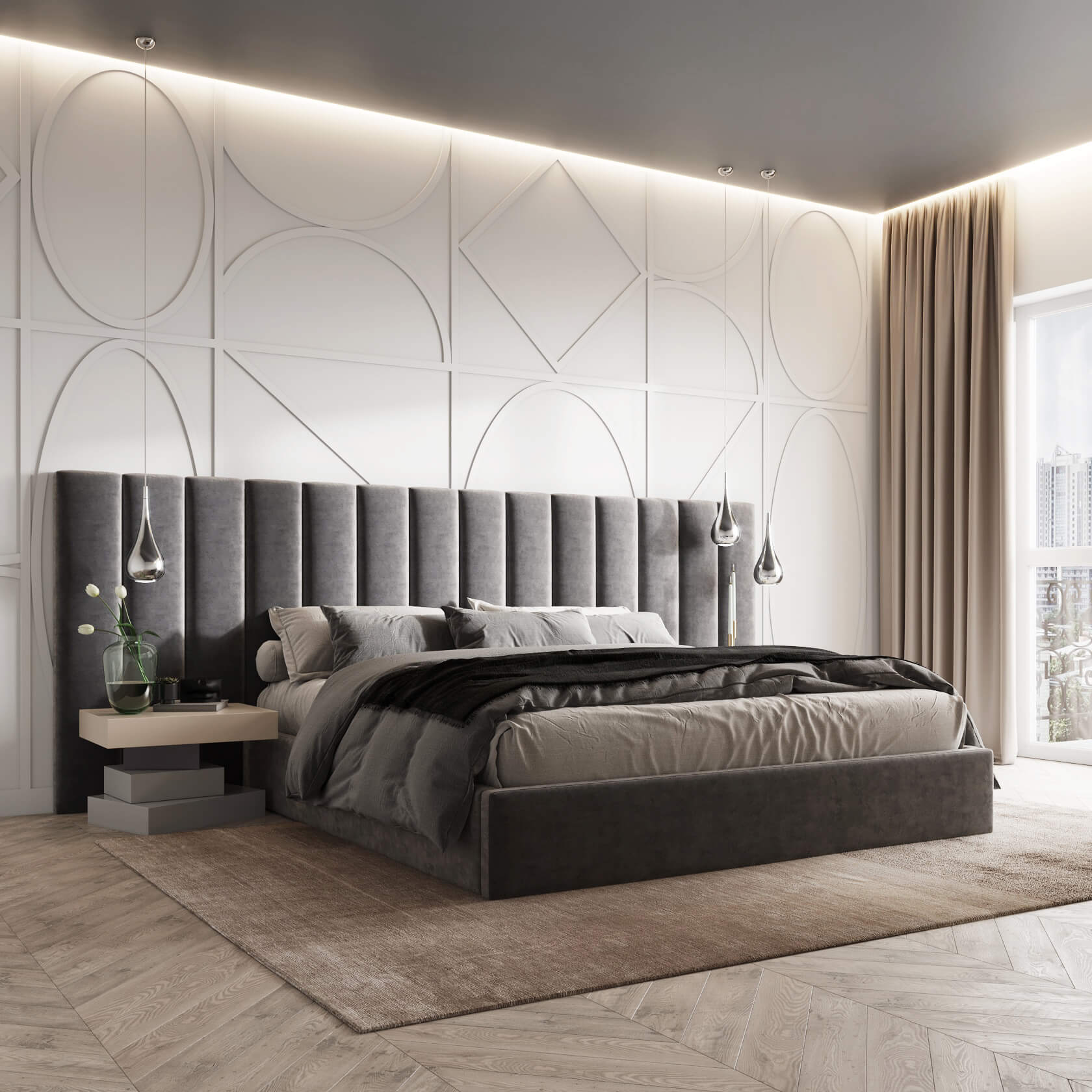 Кровать "Санторини" удлиненное изголовье